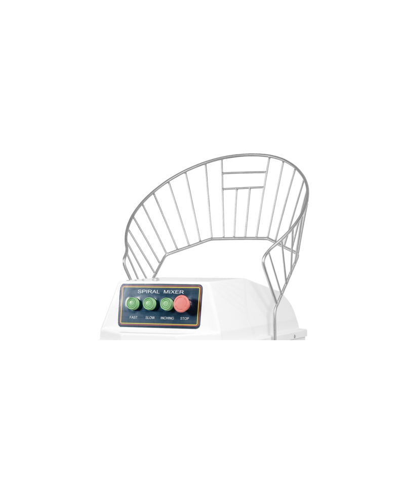 Dzieża o pojemności 40 litrów i średnicy wewnętrznej 450mm jest trwale zamocowana, co zapewnia stabilność podczas pracy. Maksymalny wsad ciasta wynosi 16kg, co pozwala na przygotowanie dużych partii. Bezpieczeństwo użytkowania podnosi solidna osłona ochronna ze stali nierdzewnej, skutecznie zapobiegająca przypadkowemu dostaniu się rąk lub przedmiotów do dzieży. Praktyczne otwory wsypowe umożliwiają wygodne dodawanie składników w trakcie procesu wyrabiania ciasta.