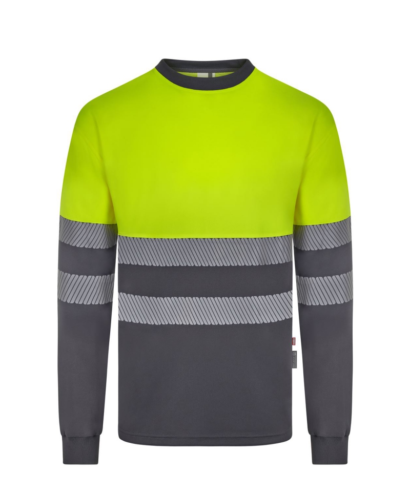 Koszulka z długim rękawem, wykonana z oddychającej tkaniny bawełniano-poliestrowej, łączy wygodę noszenia z funkcjonalnością i profesjonalnym wyglądem. Dwukolorowy fason – z kontrastowym wykończeniem dekoltu i dolnej części rękawów – nadaje odzieży charakterystyczny styl, który podnosi widoczność i estetykę. Taśmy odblaskowe REFLEX RS w wersji segmentowej zostały naniesione metodą termozgrzewalną zarówno na tułów, jak i rękawy, dzięki czemu zachowano elastyczność materiału i swobodę ruchów.