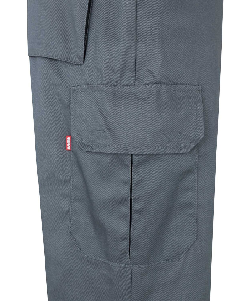 Funkcjonalne spodnie robocze o dwukolorowym wzornictwie, z pasem elastycznym, odblaskami i aż sześcioma praktycznymi kieszeniami.