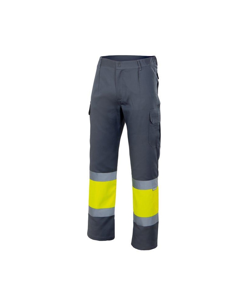 Dwukolorowe spodnie robocze z podszewką to propozycja stworzona z myślą o pracy w chłodniejszych warunkach. Wewnętrzna, gładka dzianinowa podszewka zapewnia przyjemne ciepło i komfort termiczny, nie ograniczając jednocześnie swobody ruchu. Model wyposażony jest w taśmę odblaskową na dolnej części nogawek, co pozwala na lepszą widoczność i bezpieczeństwo w miejscach o ograniczonym oświetleniu – zgodnie z normą EN 20471 (klasa 1).