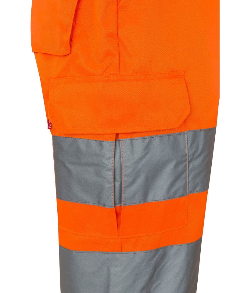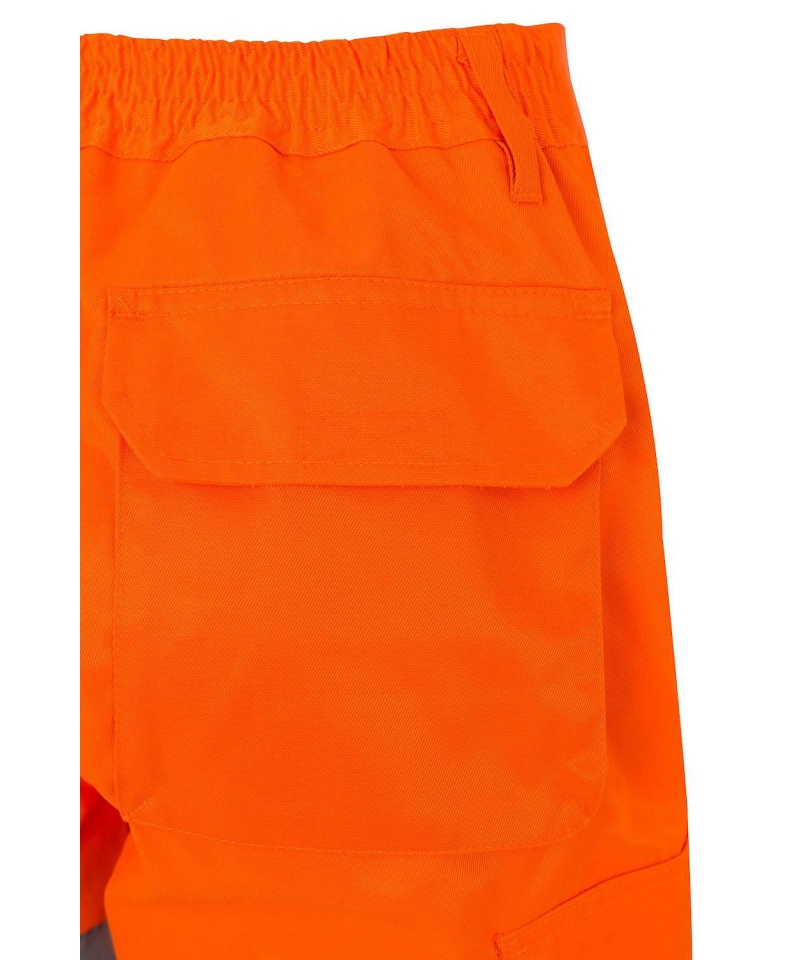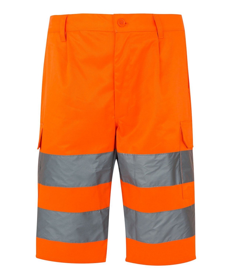 Dwukolorowe szorty ostrzegawcze z wieloma kieszeniami to doskonały wybór na cieplejsze dni pracy, gdy komfort i bezpieczeństwo są równie ważne. Model wykonany z tkaniny diagonalnej (splot skośny) o wysokiej odporności, dostępny w wersji pomarańczowej i żółtej, spełnia wymagania normy EN 20471 klasa 2. Dzięki taśmom odblaskowym REFLATEX® pracownik pozostaje widoczny nawet w trudnych warunkach oświetleniowych.