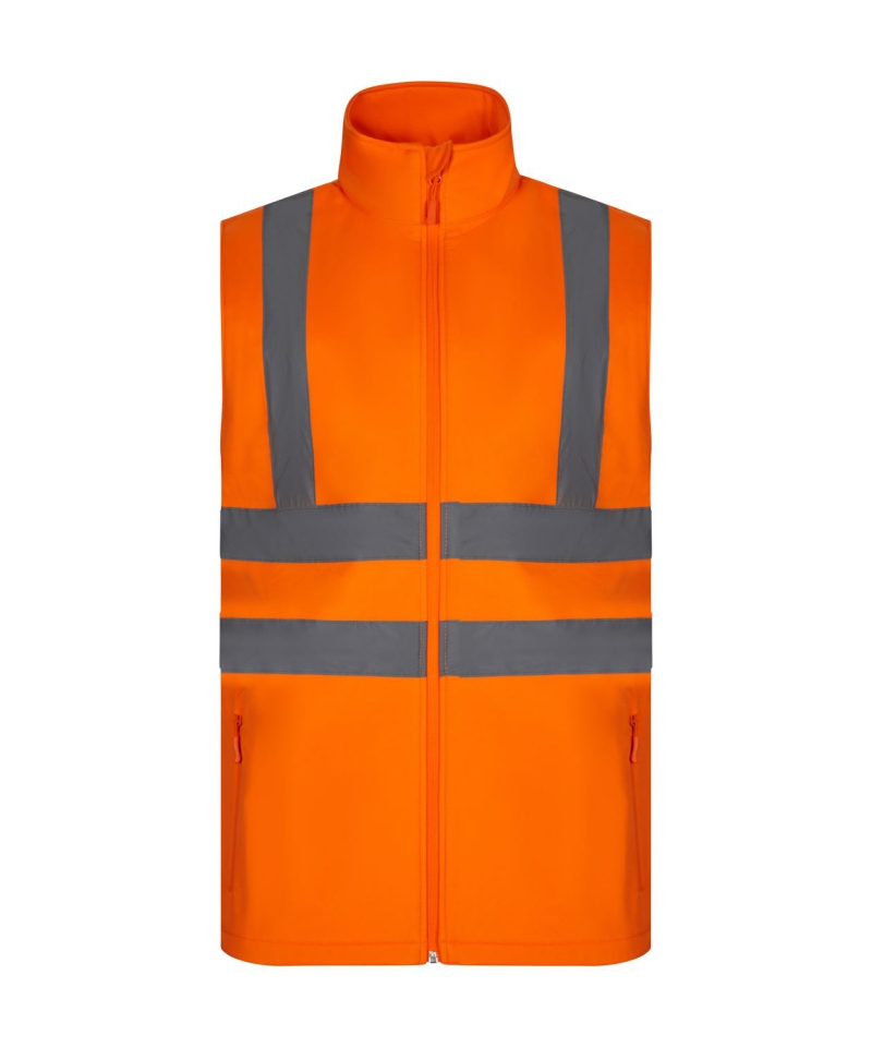 Kamizelka softshell o wysokiej widoczności, z odblaskowymi taśmami i funkcjonalnymi kieszeniami – idealna na każdą porę roku.