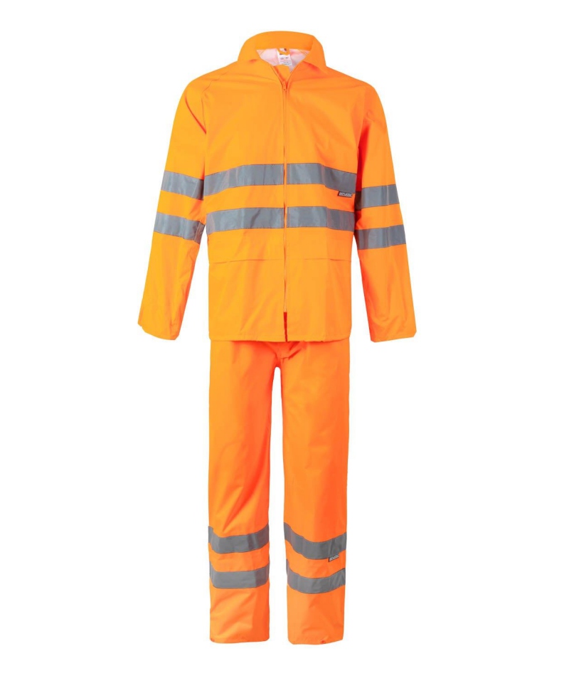 Polar ostrzegawczy HI-VIS ORANGE 19 z taśmą REFLEXTEX, 280 gsm, klasa 2. Zamek centralny, trzy kieszenie na suwak, elastyczne mankiety, regulowany dół.