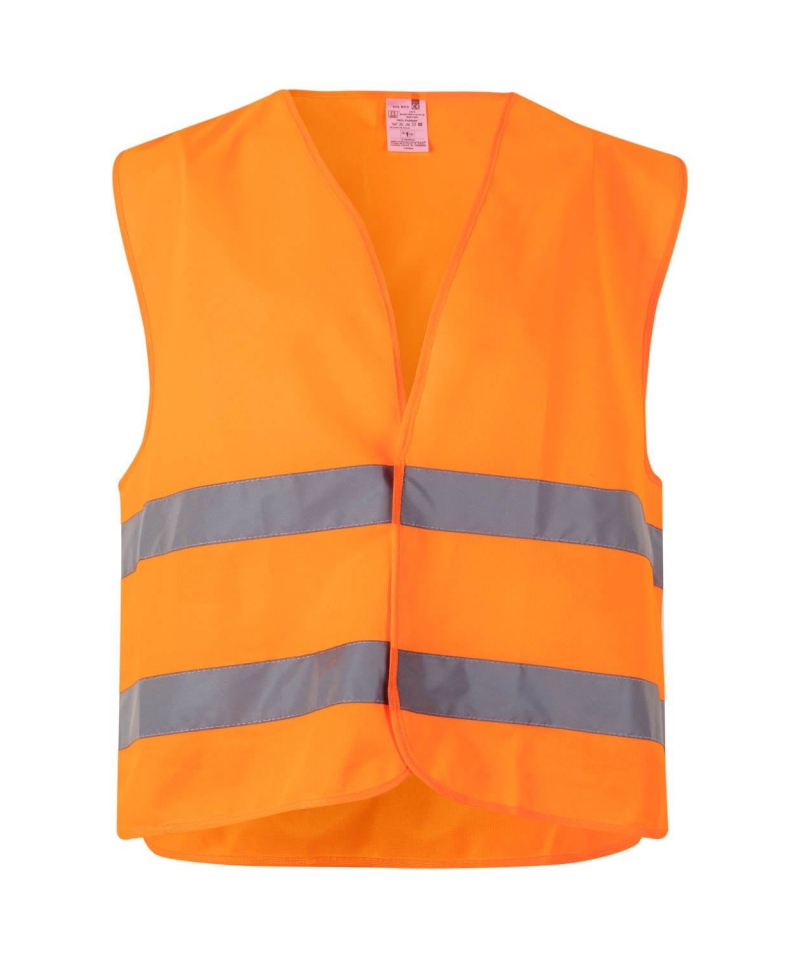 Lekka kamizelka ostrzegawcza z siatkowej tkaniny 100% poliester, wyposażona w dwa pasy odblaskowe i wygodne zapięcie na rzep. Zapewnia dobrą wentylację, komfort noszenia i zgodność z normą EN 20471 (klasa 2). Dostępna w kolorze pomarańczowym i żółtym.