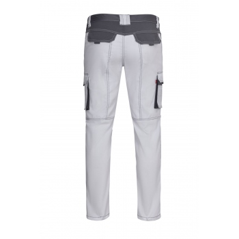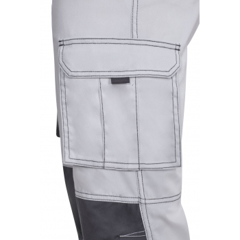 Funkcjonalne spodnie robocze o dwukolorowym wzornictwie, z pasem elastycznym, odblaskami i aż sześcioma praktycznymi kieszeniami.