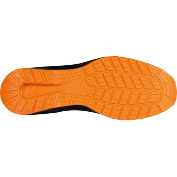 Podeszwa z poliuretanu i TPU została zaprojektowana z myślą o maksymalnej lekkości i odporności na skręcanie, a wysunięta pięta wspiera stabilność i amortyzuje wstrząsy przy każdym kroku. Obuwie spełnia normę EN ISO 20345:2022, a także jest dostosowane do indywidualnych wkładek ortopedycznych zgodnych z normą DGUV 112-191, dzięki czemu sprawdzi się również u osób z problemami ortopedycznymi.