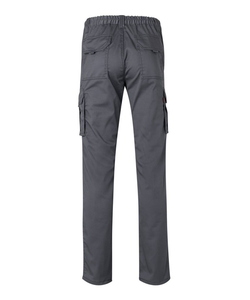 Dopasowany krój podkreśla sylwetkę, a elastyczny pas oraz podwójne szwy wzmacniające zwiększają wygodę i trwałość produktu. Spodnie posiadają sześć praktycznych kieszeni, w tym pojemne kieszenie z kontrafałdami i klapami zapinanymi na rzepy – idealne do przechowywania narzędzi, rękawic czy telefonu. Centralny zamek błyskawiczny i guzik to klasyczne i niezawodne zapięcie.