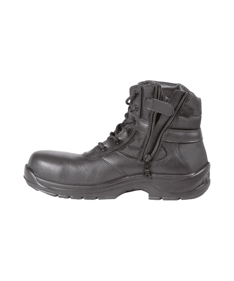 Model ten spełnia normę EN ISO 20347:2022, a jego konstrukcja pozwala na użycie ortopedycznych wkładek zgodnych z niemiecką normą DGUV 112-191. Dzięki wewnętrznemu zamkowi błyskawicznemu możliwe jest szybkie zakładanie i zdejmowanie obuwia, co zwiększa wygodę codziennego użytkowania.