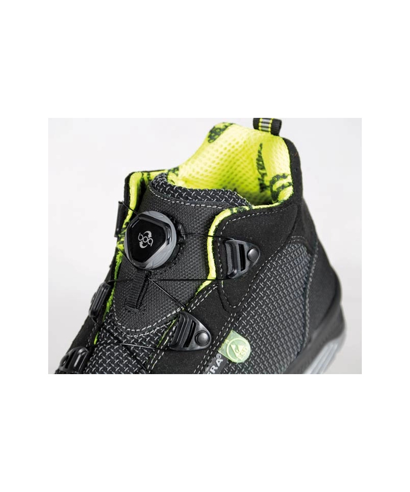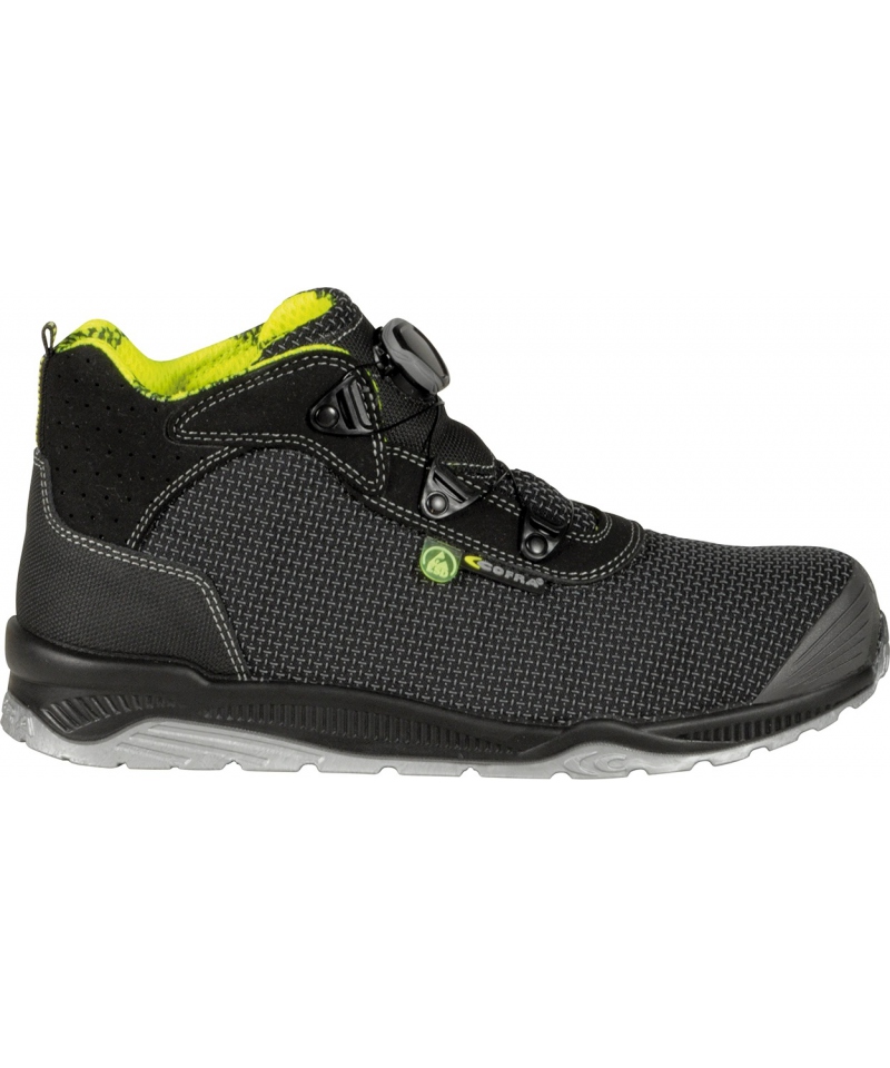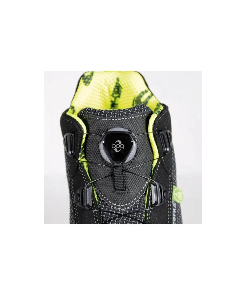 Ochronę zapewnia aluminiowy nosek o wytrzymałości 200 J oraz niemetalowa wkładka antyprzebiciowa APT PLUS. Podeszwa z poliuretanu i TPU o niskiej oporności elektrycznej gwarantuje odporność na poślizg oraz wysoki poziom elastyczności dzięki specjalnie zaprojektowanej strukturze i szerokim korkom bocznym. Innowacyjna mieszanka w podeszwie środkowej skutecznie ogranicza zmęczenie kończyn. Zastosowany system BOA® Fit pozwala na błyskawiczne i precyzyjne dopasowanie obuwia do stopy, co zwiększa wygodę i bezpieczeństwo użytkowania.