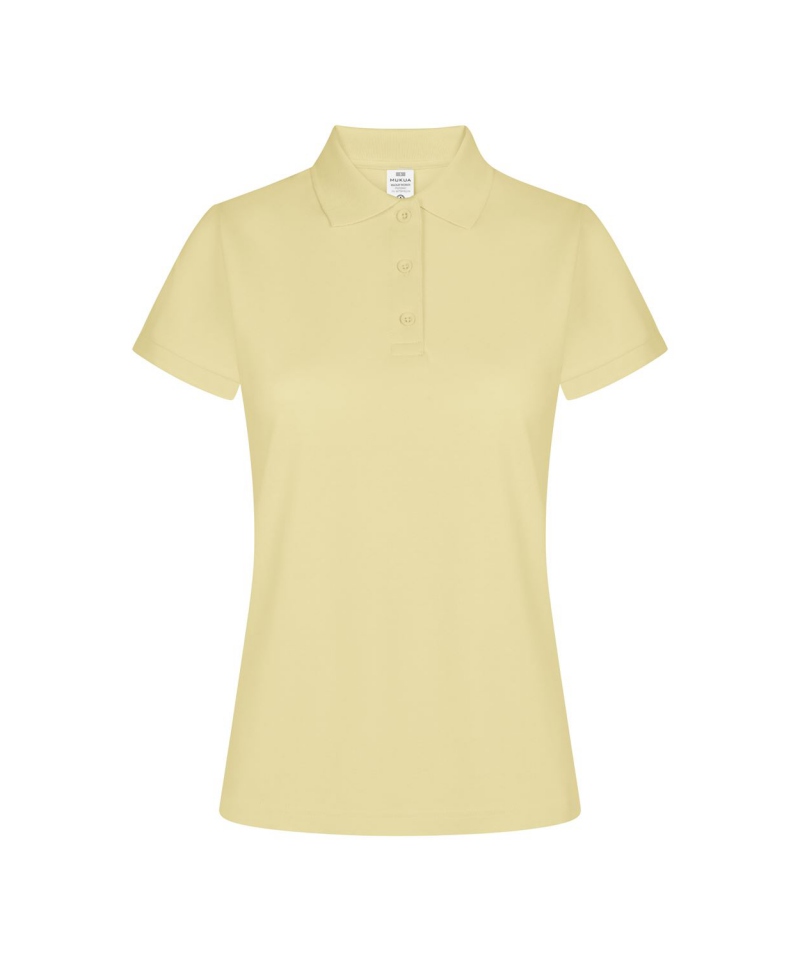 Damska koszulka polo z krótkim rękawem wykonana z wysokiej jakości dzianiny pique ze 100% bawełny ring-spun, wstępnie skurczonej, o gramaturze 210 g/m². Tkanina ta łączy w sobie trwałość z komfortem noszenia, gwarantując przewiewność, elastyczność oraz odporność na deformacje nawet po wielu praniach.