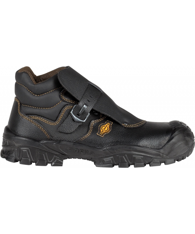 Podeszwa z poliuretanu o podwójnej gęstości posiada szerokie kanały drenażowe i konstrukcję korków które zapewniają doskonałą przyczepność. Podeszwa biegnie po pięcie podeszwie i czubku zwiększając ochronę i odporność na zużycie. Dodatkowo but wyposażono w regulowaną metalową klamrę osłonę na palce odporną na ścieranie oraz zabezpieczenie sznurowadeł. Model zapewnia komfort termiczny nawet w niskich temperaturach co jest ważne dla osób pracujących w trudnych warunkach. COFRA współpracuje z warsztatami ortopedycznymi oferując wkładki dostosowane do użytkowników z problemami ortopedycznymi zgodne z normą EN ISO 20345:2022 i DGUV 112-191.