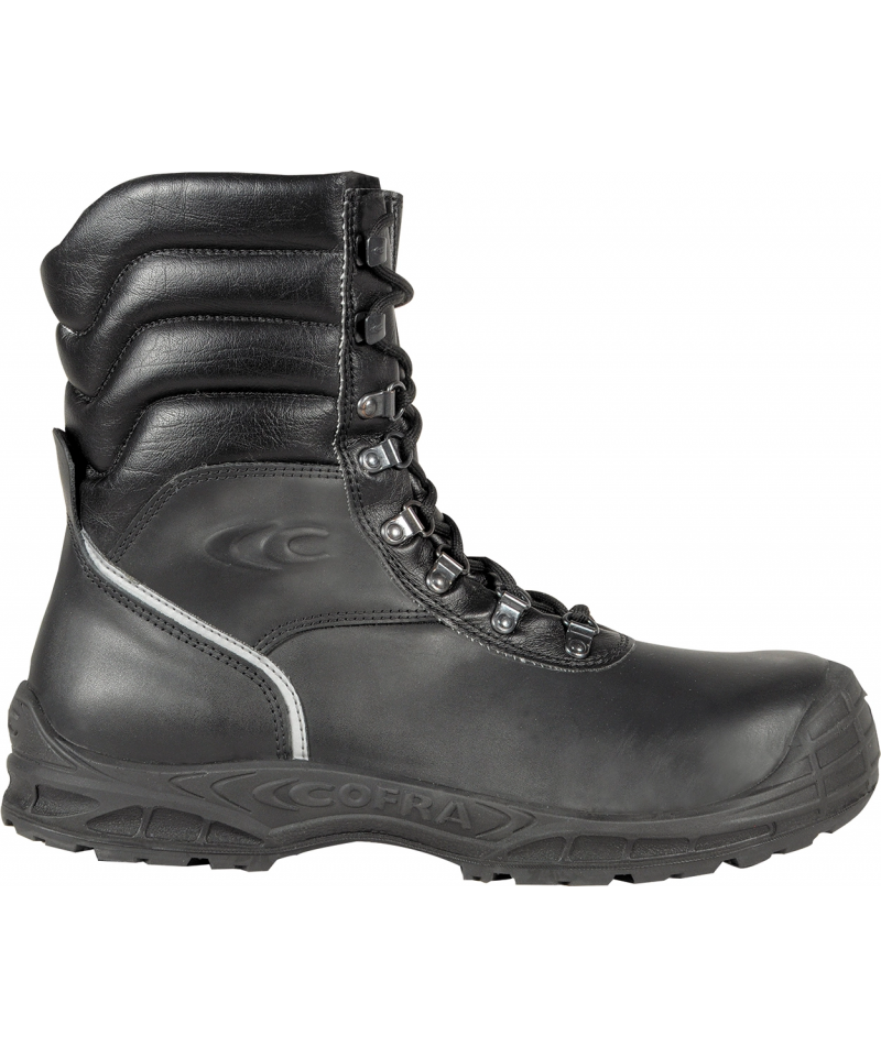 COFRA DE CHIRICO BLACK S3S CI FO SR to trwałe, oddychające i wygodne obuwie robocze z wodoodpornej skóry, wkładką EVANIT, niemetalowym noskiem i płytką antyprzebiciową APT PLUS. Ocieplane i odpowiednie do pracy w chłodnym środowisku. Zgodne z EN ISO 20345:2022 i DGUV 112-191.