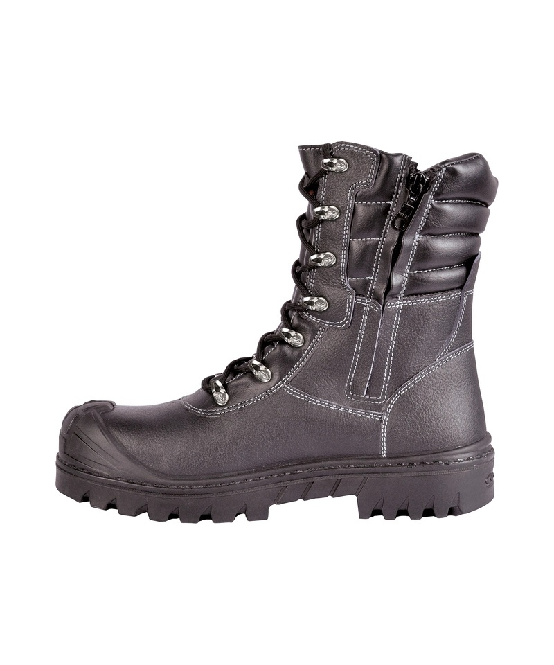 Model NEW MOZAMBICO UK S3S CI HRO LG SC FO SR z linii TOP WORK to wytrzymałe obuwie ochronne stworzone z myślą o pracy w zróżnicowanych i wymagających warunkach. Cholewka z hydrofobowej skóry z nadrukiem skutecznie zabezpiecza przed wilgocią i uszkodzeniami mechanicznymi. Wewnętrzna podszewka z ekologicznego futra, wzbogacona o izolację THINSULATE™ 200 g, zapewnia doskonałą ochronę przed zimnem, jednocześnie utrzymując wysoki poziom oddychalności i odporności na ścieranie. Zewnętrzna podszewka z oddychającego materiału syntetycznego zwiększa komfort noszenia nawet przy długotrwałej pracy.