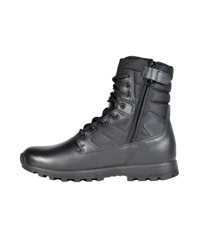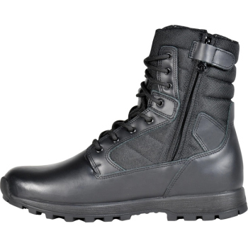 Obuwie posiada praktyczny wewnętrzny boczny zamek błyskawiczny ułatwiający zakładanie i zdejmowanie. COBRAY BLACK łączy wysokiej jakości materiały innowacyjne rozwiązania w konstrukcji podeszwy oraz ergonomiczne dopasowanie co zapewnia komfort i stabilność nawet podczas długotrwałego użytkowania. Model sprawdzi się w szerokim zakresie aktywności wojskowej i pracy w mundurze.