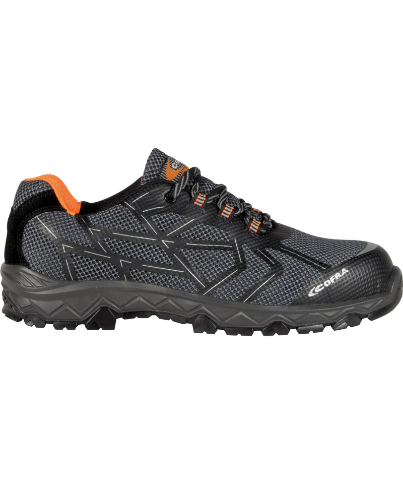 Podeszwa poliuretanowa o podwójnej gęstości łączy odporność mechaniczną z komfortem chodzenia. Symetryczna geometria centralnych bloków w kształcie diamentu zapewnia stabilność i właściwości antypoślizgowe w obu kierunkach, natomiast zewnętrzne samoczyszczące rowki skutecznie odprowadzają wodę i kurz. Obszar pięty pochłania energię uderzenia redukując naprężenia co zwiększa komfort pracy. Model CYCLETTE BLACK S1 PS FO SR spełnia normę EN ISO 20345:2022 gwarantując certyfikowaną ochronę antyprzebiciową i uderzeniową.