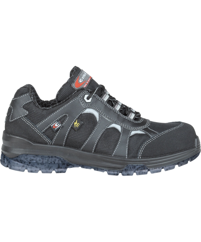 Podeszwa wykonana z poliuretanu i TPU z granulatem gumy pochodzącej z recyklingu została zaprojektowana w sportowym stylu, oferując wysoką odporność na ścieranie i doskonałą przyczepność. Dzięki testom przy styku z napięciem 18 000 V przez jedną minutę, model FRANKLIN BLACK potwierdza swoją niezawodność w pracy elektryków. Obuwie spełnia normę EN ISO 20345:2022 i dzięki całkowitemu wyeliminowaniu metalowych komponentów sprawdza się także w środowiskach o szczególnych wymaganiach bezpieczeństwa, takich jak mennica czy zakłady jubilerskie.