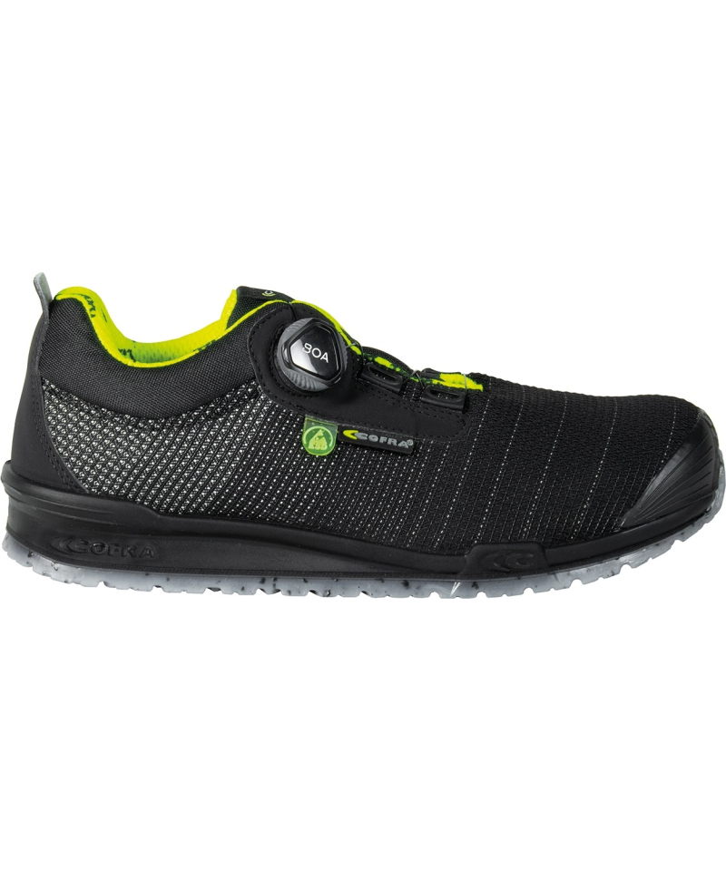Podeszwa wykonana z poliuretanu i TPU z dodatkiem granulatu gumowego pochodzącego z recyklingu jest lekka, sportowa i elastyczna. Zapewnia odporność na poślizg oraz pochłania wstrząsy, wspierając kręgosłup i dostosowując się do naturalnych ruchów stopy. Wyjątkową cechą modelu jest system dopasowania BOA, który dzięki mikroregulowanemu pokrętłu, wytrzymałym sznurowadłom i prowadnicom o niskim tarciu pozwala szybko i precyzyjnie regulować obuwie, jednocześnie eliminując ryzyko kontaktu sznurowadeł z maszynami. Model spełnia normę EN ISO 20345:2022 i jest zalecany do stosowania w strefach ATEX, gdzie niska oporność elektryczna obuwia minimalizuje ryzyko zapłonu.