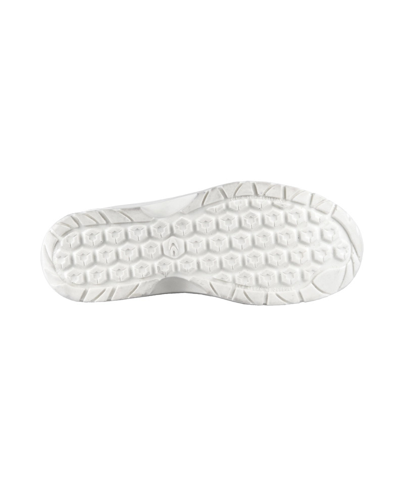 Komfort dodatkowo wspiera anatomiczna i perforowana wkładka EVANIT wykonana z mieszanki EVA i nitrylu. Dzięki termoformowanemu profilowi oraz warstwie oddychającego materiału stopa pozostaje sucha, a antystatyczne właściwości zwiększają bezpieczeństwo użytkownika. Noski ochronne TOP RETURN z niemetalowych materiałów wytrzymują uderzenia o energii do 200 J, co gwarantuje skuteczną ochronę w pracy. Całość dopełnia podeszwa z poliuretanu o podwójnej gęstości, która łączy miękkość i elastyczność z wysoką odpornością na ścieranie. Jej konstrukcja z sześciokątnymi nasadkami ssącymi zapewnia wyjątkową przyczepność nawet na mokrych i śliskich powierzchniach oraz właściwości samoczyszczące.