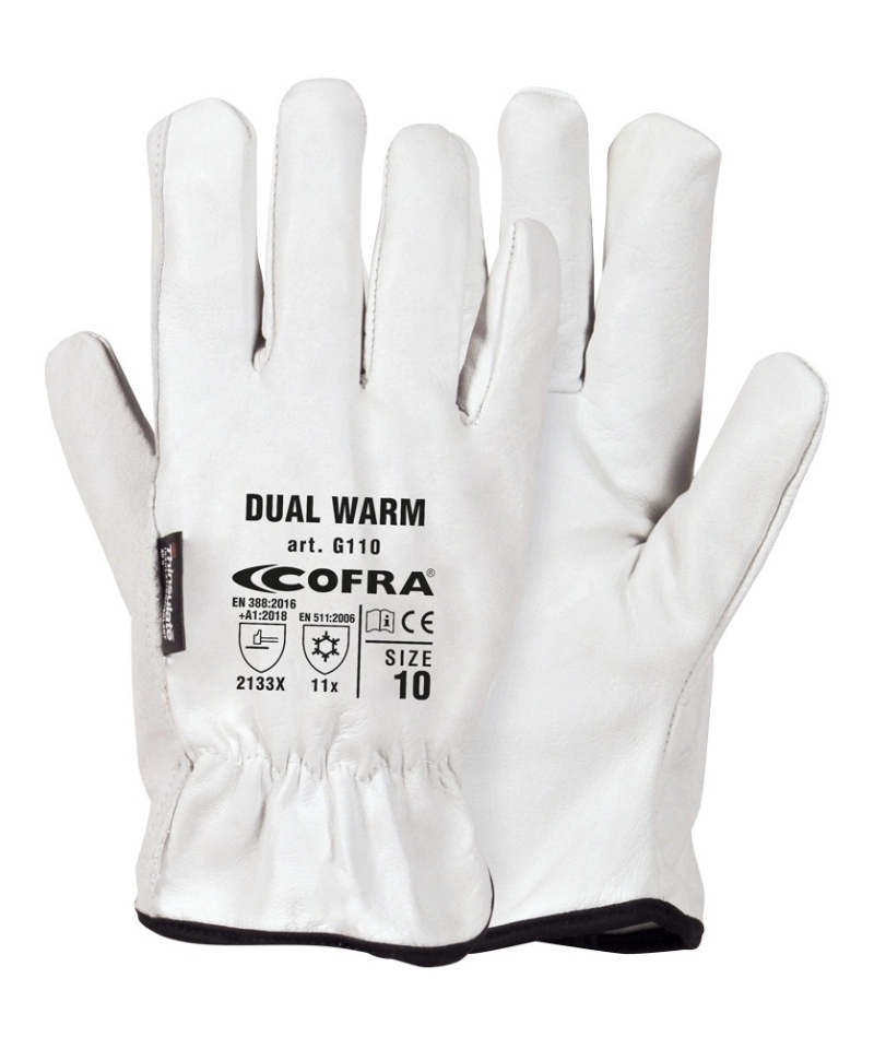 Rękawice DUAL WARM to trwałe i wygodne rozwiązanie do pracy w chłodnych warunkach. Dzięki izolacji 3M™ Thinsulate™ i skórzanej konstrukcji skutecznie łączą odporność mechaniczną z ochroną termiczną. Sprawdzą się wszędzie tam, gdzie liczy się solidność i komfort.