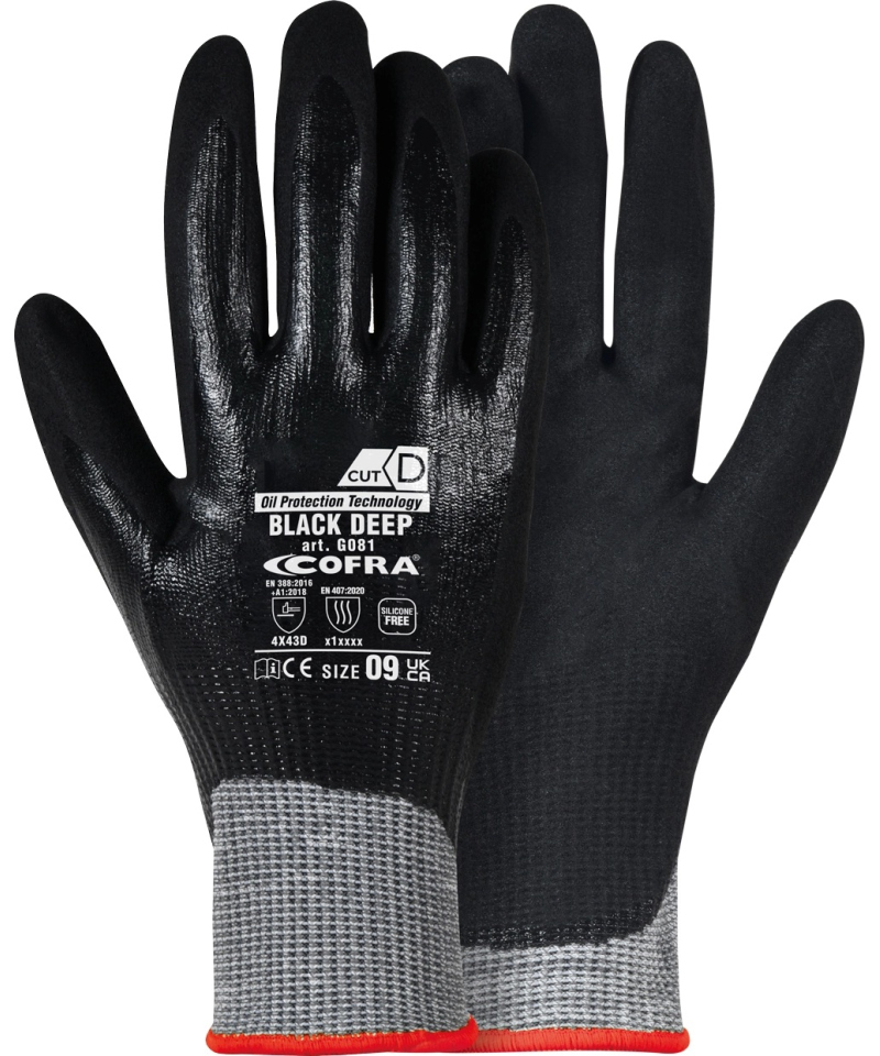 Rękawice BLACK DEEP z linii CUT PROTECTION zostały zaprojektowane do pracy w warunkach wymagających ochrony przed przecięciem oraz kontaktu z olejami i tłuszczami. Wyposażone w powłokę dwuwarstwową z nitrylu zapewniają doskonałą odporność na oleje i smary oraz pełne pokrycie dłoni, co chroni skórę przed zabrudzeniami i minimalizuje ryzyko poślizgu. Powłoka nitrylowa z piaskowym wykończeniem gwarantuje wyjątkową przyczepność na tłustych powierzchniach a wyściółka z włókien UHMWPE poliesteru i elastanu zwiększa odporność na przecięcia oraz ścieranie przy zachowaniu elastyczności i komfortu użytkowania.