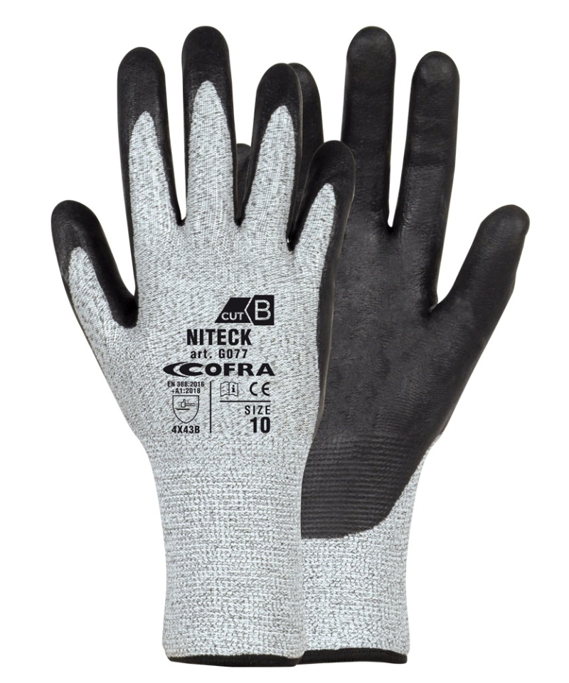 Rękawice NITECK z linii CUT PROTECTION zostały stworzone z myślą o pracy wymagającej ochrony przed przecięciem przy zachowaniu maksymalnej zręczności. Wykonane z pianki nitrylowej są miękkie elastyczne i wygodne w użyciu a podszewka z UHMWPE i nylonu zapewnia dodatkową ochronę mechaniczną i odporność na przecięcia. Dzięki temu rękawice idealnie sprawdzają się przy precyzyjnych zadaniach takich jak majsterkowanie prace budowlane i konstrukcyjne a także w przemyśle drzewnym papierniczym tworzyw sztucznych inżynieryjnym tekstylnym i skórzanym.