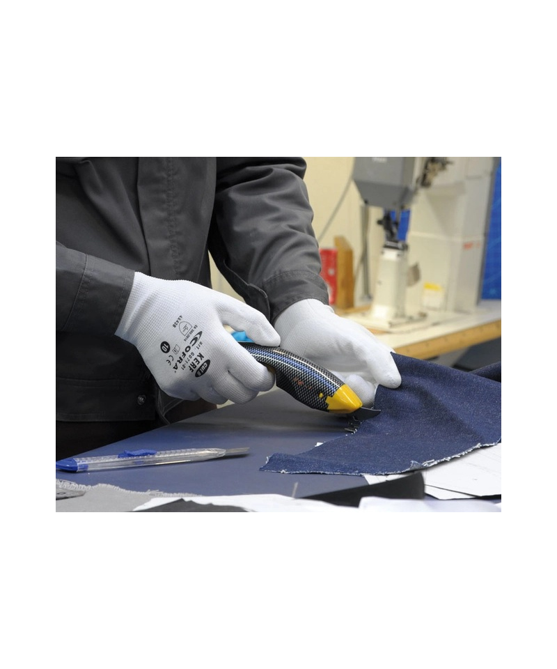 Rękawice KERF z linii CUT PROTECTION zostały stworzone z myślą o pracach wymagających wysokiej precyzji i dobrego czucia w dłoniach. Zastosowanie podszewki z włókien UHMWPE oraz nylonu zapewnia dobrą odporność na przecięcia przy jednoczesnym zachowaniu lekkości i komfortu. Powłoka poliuretanowa wykonana w technologii PU-DEX gwarantuje doskonałą przyczepność do małych narzędzi, co znacząco zwiększa skuteczność podczas pracy w warunkach wymagających maksymalnej dokładności.