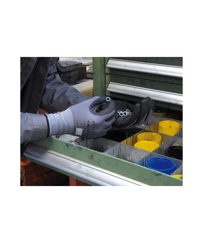 DEXTERMAX jest zgodny z certyfikatem OEKO-TEX 100 co potwierdza że materiały użyte do produkcji nie zawierają substancji szkodliwych dla zdrowia użytkownika. Rękawice sprawdzają się doskonale przy pracach rolniczych budowlanych i konstrukcyjnych a także w przemyśle drzewnym tekstylnym inżynieryjnym i podczas transportu i logistyki. Przyczepność na sucho jest wysoka co ułatwia pewne chwytanie narzędzi i elementów podczas wykonywania różnych czynności manualnych.