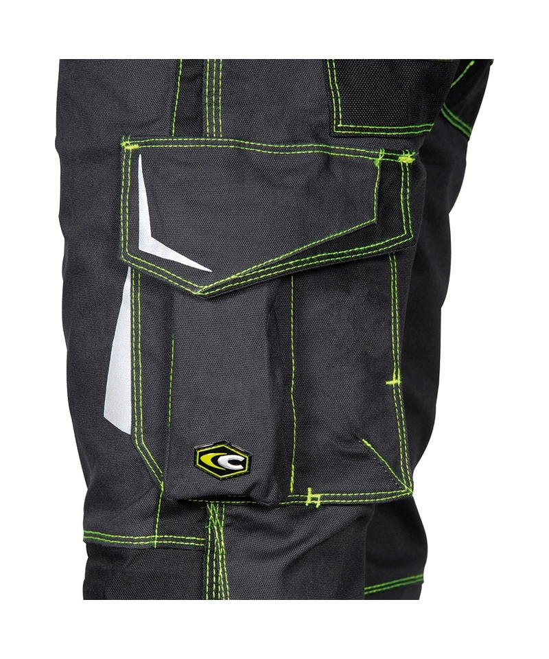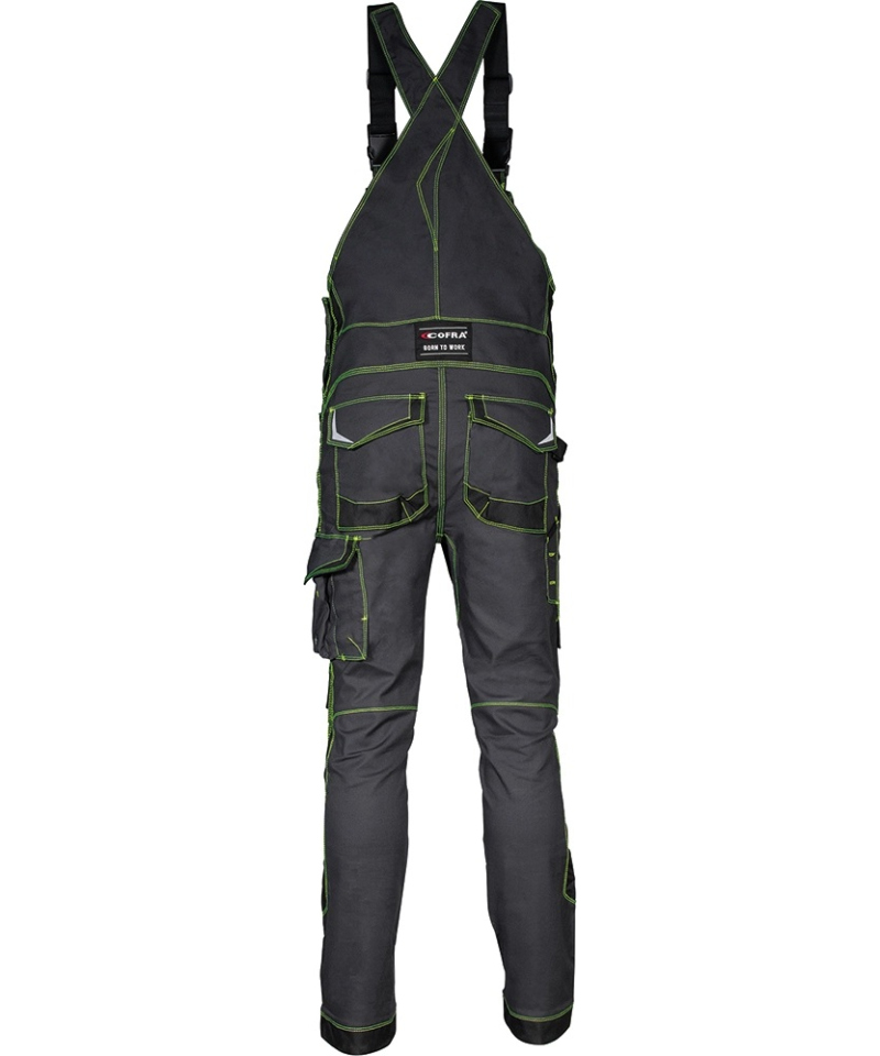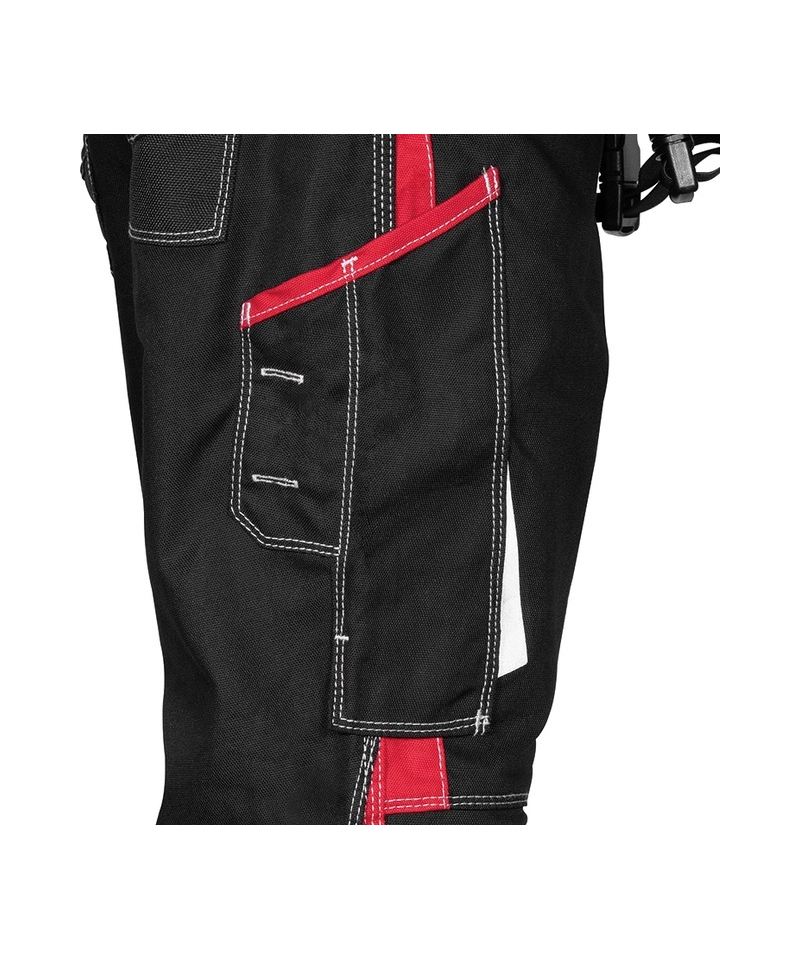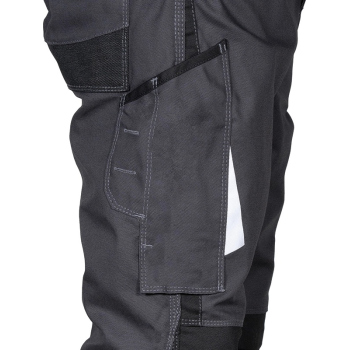 Projekt REDONDA został zaprojektowany z myślą o pełnej ergonomii użytkowania. Posiada liczne, praktyczne kieszenie, w tym podwójną kieszeń tylną z klapką, kieszeń boczną, na telefon i linijkę, a także regulowane nylonowe kieszenie na nakolanniki. Szelki z systemem szybkiego odpinania oraz regulowana pętla na młotek zwiększają funkcjonalność i wygodę. Zastosowane wstawki odblaskowe 3M™ Scotchlite™ 8725 w kolorze srebrnym zapewniają doskonałą widoczność w warunkach słabego oświetlenia, spełniając wymagania normy EN ISO 20471:2013/A1:2016. Całość uzupełniają niezawodne zamki YKK®, które gwarantują płynność i trwałość działania.