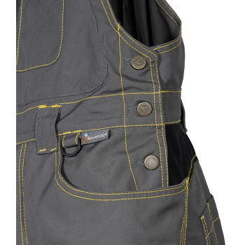 Model NOTTINGHAM zaprojektowano z myślą o ergonomii i maksymalnej funkcjonalności. Regulowane szelki z szybkim odpinaniem, elastyczna talia i wzmacniane strefy w kroku i na kolanach gwarantują doskonałe dopasowanie oraz swobodę ruchu. Liczne kieszenie, w tym kieszeń na telefon z technologią E-WARD, boczne schowki na narzędzia i regulowane kieszenie na nakolanniki, czynią ten model niezwykle praktycznym. Tkanina E-WARD chroni użytkownika przed promieniowaniem elektromagnetycznym emitowanym przez urządzenia mobilne, redukując jego intensywność o ponad 99%. Zastosowane zamki YKK® zapewniają niezawodność i płynność użytkowania, a system RIGHT-FIT umożliwia perfekcyjne dopasowanie długości nogawek do sylwetki.