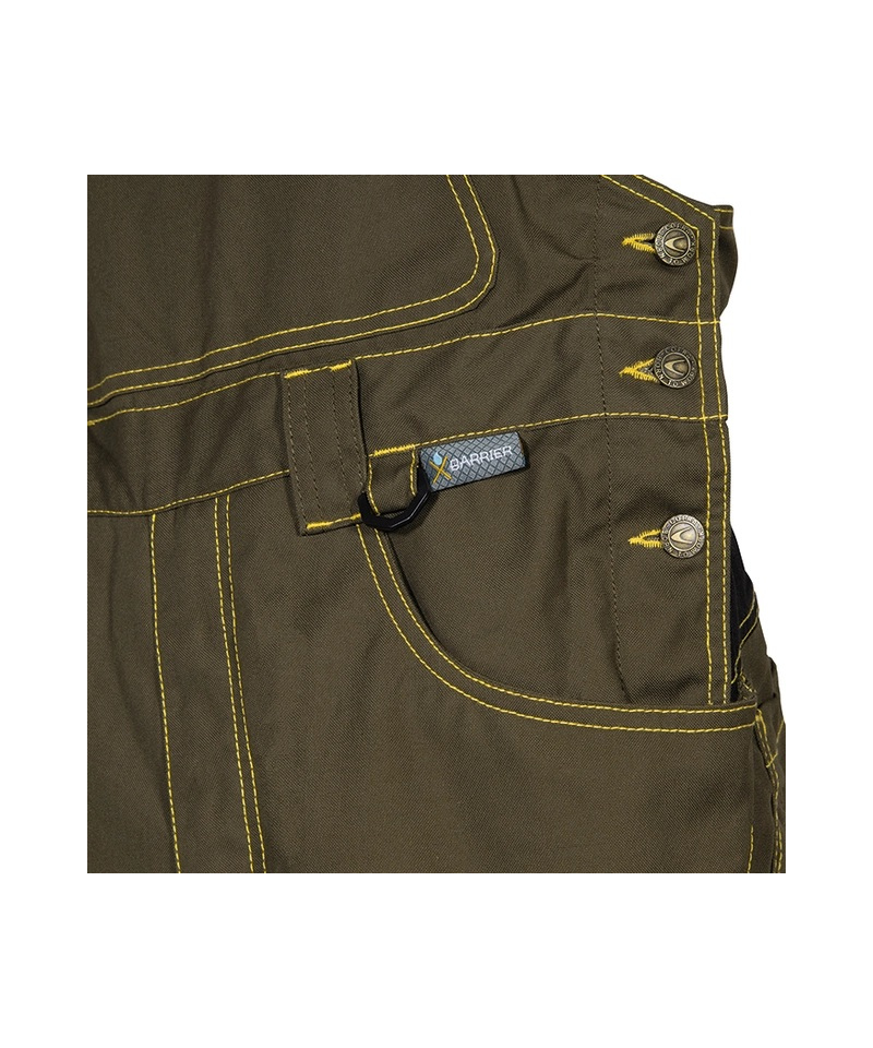 Ogrodniczki DORSET to funkcjonalna odzież robocza łącząca nowoczesną technologię tkanin z praktycznym designem dla profesjonalistów wymagających komfortu i ochrony w pracy. Wykonane z mieszanki 65% poliestru i 35% bawełny o gramaturze 320 g/m², pokrytej powłoką X-BARRIER, zapewniają ochronę przed wodą, olejami i zabrudzeniami, a jednocześnie pozwalają skórze oddychać. Technologia nanotechnologiczna zastosowana w tkaninie zwiększa jej trwałość i utrzymuje miękkość nawet przy częstym praniu co przekłada się na wygodę podczas całego dnia pracy.