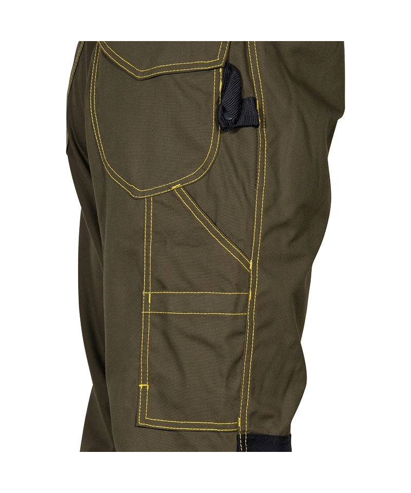 Model DORSET oferuje ergonomiczne rozwiązania i praktyczne dodatki. Regulowane szelki z systemem szybkiego odpinania, elastyczna talia oraz wzmocnienia w kroku i na kolanach gwarantują pełną swobodę ruchu i wytrzymałość odzieży. Liczne kieszenie, w tym kieszenie na narzędzia, monety i linijkę, a także regulowane kieszenie na nakolanniki i odblaskowe wstawki, zwiększają funkcjonalność i bezpieczeństwo podczas pracy. Zamki YKK® zapewniają niezawodność, a system RIGHT-FIT pozwala dopasować długość nogawek do sylwetki użytkownika dla idealnego komfortu.