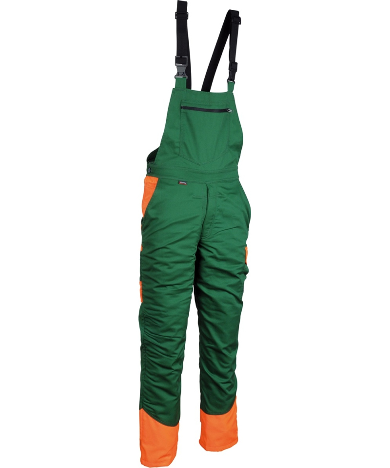 Ogrodniczki SECURE CUT z linii CHAINSAW PROTECTION to profesjonalna odzież ochronna zaprojektowana specjalnie dla osób pracujących z piłą łańcuchową. Wykonane z trwałej mieszanki poliestru i bawełny o gramaturze 260 g/m², gwarantują odporność na przetarcia, a jednocześnie zapewniają komfort i przewiewność podczas pracy w lesie lub przy przycinaniu drzew. Konstrukcja spodni została opracowana z myślą o bezpieczeństwie – klapa zakrywająca zamek jest wzmocniona materiałem ochronnym, a elastyczna talia oraz regulowane szelki z szybkim systemem odpinania umożliwiają idealne dopasowanie do sylwetki.