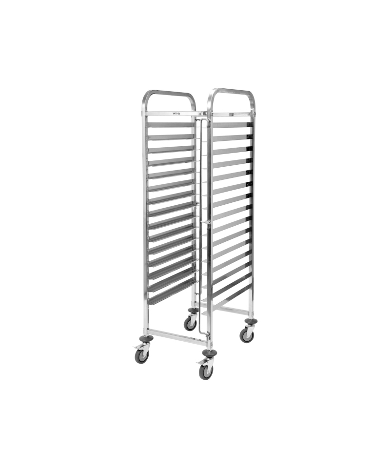 Wózek transportowy YATO, o optymalnych wymiarach 470 x 620 x 1700 mm, został zaprojektowany do efektywnego przewozu 15 tac kelnerskich o standardowych wymiarach 400 x 600 mm lub blach piekarniczych. To niezastąpione rozwiązanie do profesjonalnego zastosowania w placówkach gastronomicznych.