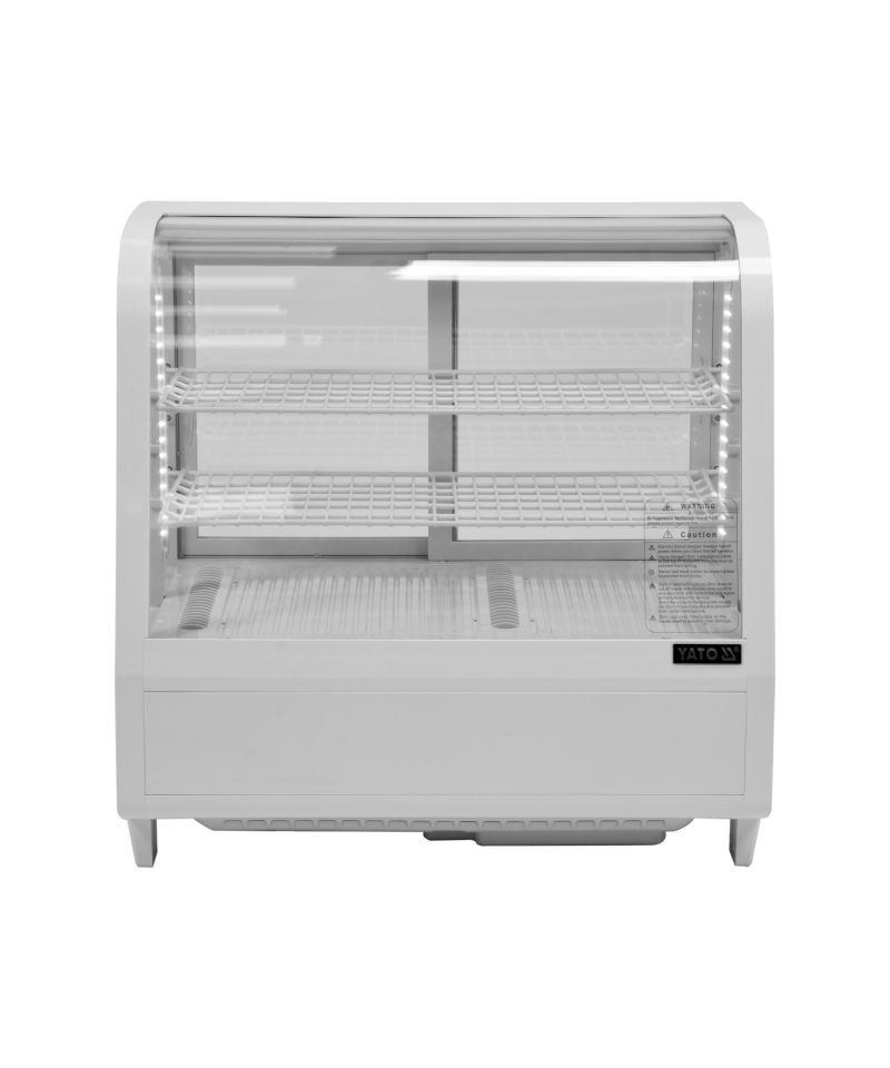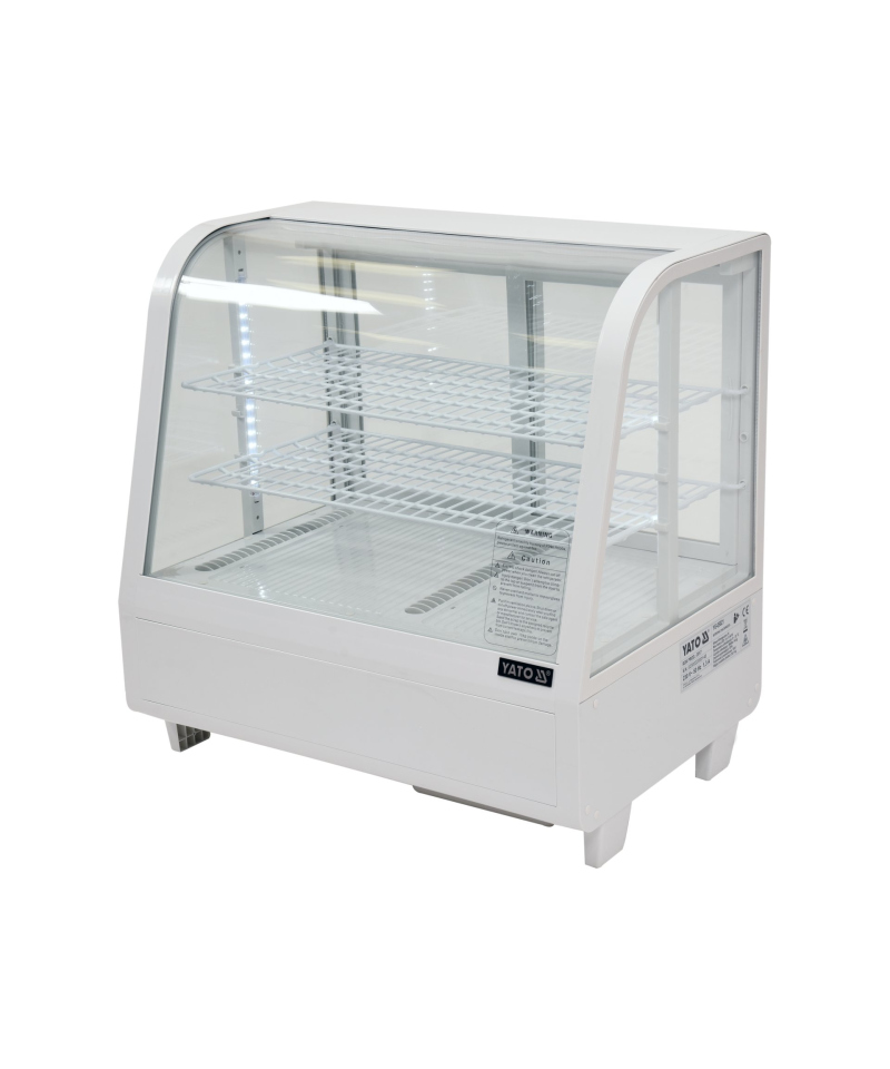 Biała witryna chłodnicza nastawna YATO o pojemności 100L to idealne rozwiązanie do profesjonalnej ekspozycji. To eleganckie urządzenie marki YATO zostało zaprojektowane z myślą o efektownej prezentacji ciast, tortów, koktajli oraz szerokiej gamy napojów. Dzięki nowoczesnemu wzornictwu i zastosowaniu wysokiej jakości materiałów, witryna YATO doskonale komponuje się z wnętrzem cukierni, kawiarni, restauracji oraz innych punktów handlowych, skutecznie przyciągając wzrok klientów. Wbudowane, energooszczędne oświetlenie LED perfekcyjnie podkreśla walory estetyczne eksponowanych produktów, zachęcając do ich wyboru. Ta 100-litrowa nadstawka chłodnicza YATO wyposażona jest w dwie powlekane półki z możliwością regulacji wysokości i imponującą nośnością 10 kg każda. Łatwy dostęp do wnętrza zapewniają wygodne, przesuwne drzwiczki szklane. Zarówno drzwiczki, jak i panoramiczna, zaokrąglona szyba przednia, wykonane zostały z wysokiej jakości szkła hartowanego. Gwarantuje to nie tylko wyjątkową wytrzymałość, ale także doskonałe właściwości izolacyjne, utrzymując optymalną temperaturę wewnątrz. Witryna utrzymuje stabilny zakres temperatur od 0°C do +12°C, wykorzystując ekologiczny czynnik chłodniczy R600a. Zastosowana technologia chłodzenia statycznego z górnym obiegiem chłodzącym oraz funkcją automatycznego rozmrażania gwarantuje niezwykle efektywną i jednocześnie energooszczędną pracę urządzenia. Jej średnie roczne zużycie energii to zaledwie 730 kWh, co podkreśla jej ekonomiczny charakter. Intuicyjne sterowanie nadstawką zapewnia precyzyjny sterownik elektroniczny z czytelnym wyświetlaczem temperatury.