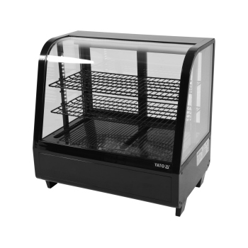 Elegancka witryna chłodnicza YATO, wolnostojąca, o pojemności 100L, w klasycznym czarnym kolorze.