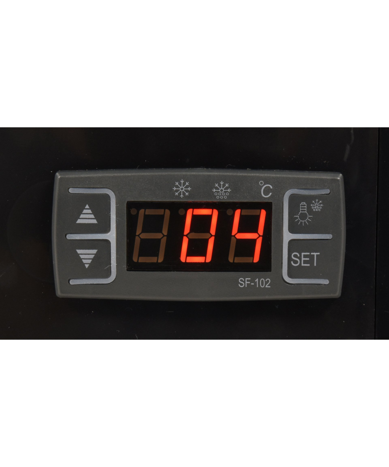 Witryna utrzymuje optymalny zakres temperatur od 0 do +12°C, wykorzystując ekologiczny czynnik chłodniczy R600a. Zastosowana technologia chłodzenia statycznego z innowacyjną górną dyszą parową oraz praktyczna funkcja automatycznego rozmrażania gwarantują niezwykle efektywną i stabilną pracę, przy jednoczesnym zachowaniu wysokiej energooszczędności. Roczne zużycie energii elektrycznej wynosi zaledwie 730 kWh. Precyzyjne sterowanie urządzeniem odbywa się za pomocą intuicyjnego sterownika elektronicznego, wyposażonego w czytelny wyświetlacz temperatury.