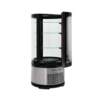 Elegancka witryna chłodnicza nadblatowa YATO o okrągłym kształcie i pojemności 100L, w klasycznym czarnym kolorze. Ta profesjonalna witryna chłodnicza marki YATO idealnie sprawdzi się do atrakcyjnej ekspozycji ciast, tortów, deserów, koktajli oraz różnorodnych napojów. Jej nowoczesne wzornictwo w połączeniu z najwyższą jakością użytych materiałów sprawia, że witryna YATO stanowi doskonały element wyposażenia każdej cukierni, kawiarni, restauracji czy prestiżowego punktu handlowego. Wbudowane, energooszczędne oświetlenie LED efektownie podkreśla walory estetyczne prezentowanych produktów, skutecznie zachęcając klientów do ich wyboru. Witryna YATO o pojemności 100L wyposażona jest w trzy półki z hartowanego szkła, z możliwością regulacji wysokości. Łatwy dostęp do wnętrza zapewniają szklane drzwiczki z funkcją automatycznego domykania, co zwiększa komfort użytkowania i minimalizuje straty chłodu. Zarówno drzwiczki, jak i elegancka, zaokrąglona szyba przednia wykonane są z hartowanego szkła, gwarantując wyjątkową trwałość oraz doskonałe właściwości izolacyjne. Urządzenie utrzymuje stabilny zakres temperatur od +2 do +8°C, wykorzystując ekologiczny czynnik chłodniczy R600a. Zastosowana technologia chłodzenia wymuszonego wraz z funkcją automatycznego rozmrażania gwarantują nie tylko wysoką efektywność pracy, ale także znaczną energooszczędność. Średnie roczne zużycie energii to zaledwie 1376 kWh. Intuicyjne sterowanie odbywa się za pomocą elektronicznego panelu z cyfrowym wyświetlaczem temperatury, co ułatwia precyzyjne zarządzanie ustawieniami.