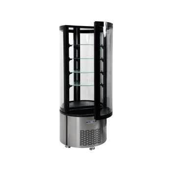 Prezentujemy elegancką, wolnostojącą witrynę chłodniczą YATO o okrągłym kształcie i pojemności 400L, dostępną w klasycznym czarnym kolorze. Idealnie sprawdzi się do efektownej ekspozycji ciast, tortów, koktajli oraz szerokiej gamy napojów, podnosząc prestiż każdego lokalu. Jej nowoczesne wzornictwo, w połączeniu z najwyższą jakością użytych materiałów, gwarantuje, że witryna YATO stanie się ozdobą każdej cukierni, kawiarni, restauracji czy punktu handlowego, przyciągając wzrok klientów. Zintegrowane, energooszczędne oświetlenie LED perfekcyjnie podkreśla walory estetyczne eksponowanych produktów, czyniąc je jeszcze bardziej apetycznymi i zachęcając do zakupu. Pojemność 400L jest optymalnie wykorzystana dzięki czterem regulowanym półkom wykonanym z hartowanego szkła, co pozwala na elastyczne dopasowanie przestrzeni do różnorodnych produktów. Dostęp do wnętrza ułatwiają otwierane szklane drzwiczki z praktyczną funkcją samo-zamykania. Zarówno drzwiczki, jak i elegancka, zaokrąglona szyba przednia, wykonane są z hartowanego szkła, co zapewnia nie tylko wyjątkową trwałość, ale także doskonałe właściwości izolacyjne. Urządzenie utrzymuje stabilny zakres temperatur od +2°C do +8°C, wykorzystując ekologiczny czynnik chłodniczy R290. Zaawansowana technologia chłodzenia wymuszonego gwarantuje równomierny rozkład temperatury w całej witrynie, a funkcja automatycznego rozmrażania minimalizuje potrzebę konserwacji, zapewniając jednocześnie wysoką efektywność energetyczną. Średnie roczne zużycie energii to zaledwie 2484 kWh, co świadczy o jej ekonomicznej pracy. Intuicyjne sterowanie witryną odbywa się za pośrednictwem elektronicznego panelu z czytelnym wyświetlaczem temperatury, co umożliwia precyzyjne monitorowanie i regulację warunków przechowywania. Innowacyjne rozwiązanie mobilności to cztery specjalnie zaprojektowane nóżki z wbudowanymi kółkami. Wkręcenie nóżek pozwala na swobodne przemieszczanie witryny w dowolne miejsce, natomiast ich wykręcenie zapewnia stabilne i bezpieczne unieruchomienie urządzenia na podłożu.