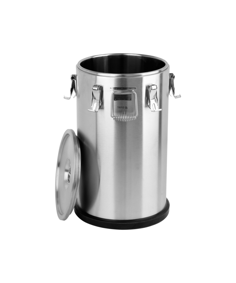 Dla maksymalnej wygody i bezpieczeństwa transportu, termos wyposażono w dwa solidne, nierdzewne uchwyty transportowe oraz sześć wytrzymałych zatrzasków, które pewnie zamykają pokrywę. Wysoka jakość i niezawodność tych komponentów zapewniają długie lata bezproblemowego użytkowania. Dodatkowo, spód termosów YATO zabezpieczony jest gumową podkładką antypoślizgową, która stabilizuje pojemnik i zapobiega jego przesuwaniu się podczas transportu.