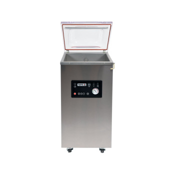 - Komora próżniowa, o imponujących wymiarach 420x385x150 (200) mm, została wykonana z grubej i solidnej **stali nierdzewnej**, co zapewnia wyjątkową trwałość i odporność na intensywne użytkowanie.