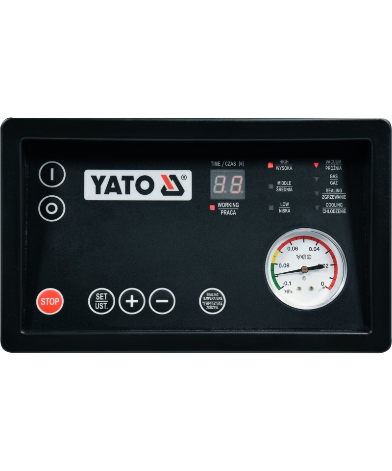 Pakowarka próżniowa dwukomorowa YATO to synonim trwałości, wykonana z najwyższej jakości surowców. Komora próżniowa o wymiarach 450 x 600 x 160 mm została stworzona z grubej i solidnej stali nierdzewnej, co zapewnia wyjątkowo długi okres eksploatacji. Jej zaokrąglone kształty ułatwiają utrzymanie nienagannej czystości. Pokrywa urządzenia, również wykonana z masywnej stali nierdzewnej, jest zamocowana na wspomaganym systemie prowadnic, co sprawia, że jej przesuwanie odbywa się bez wysiłku.