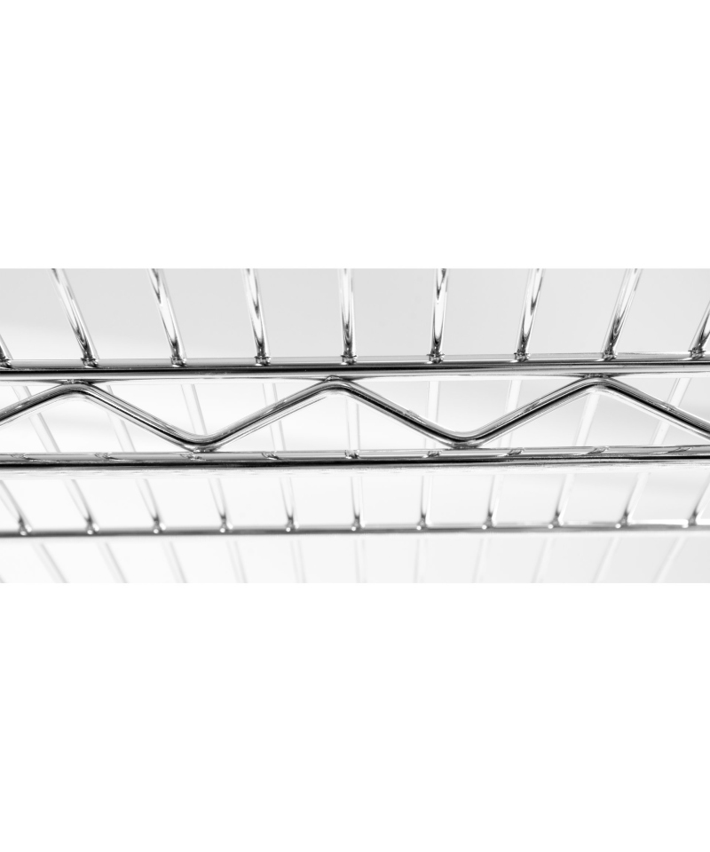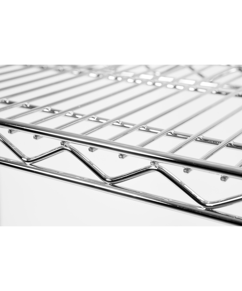 Solidna półka regałowa o wymiarach 610 x 906 mm, wykonana z wysokiej jakości stali chromowanej.