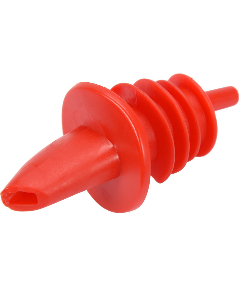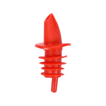Praktyczny korek z dozownikiem, dostępny w wyrazistym czerwonym kolorze, idealny do różnego rodzaju butelek.