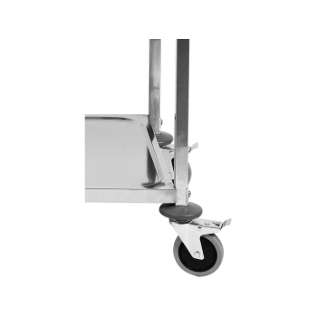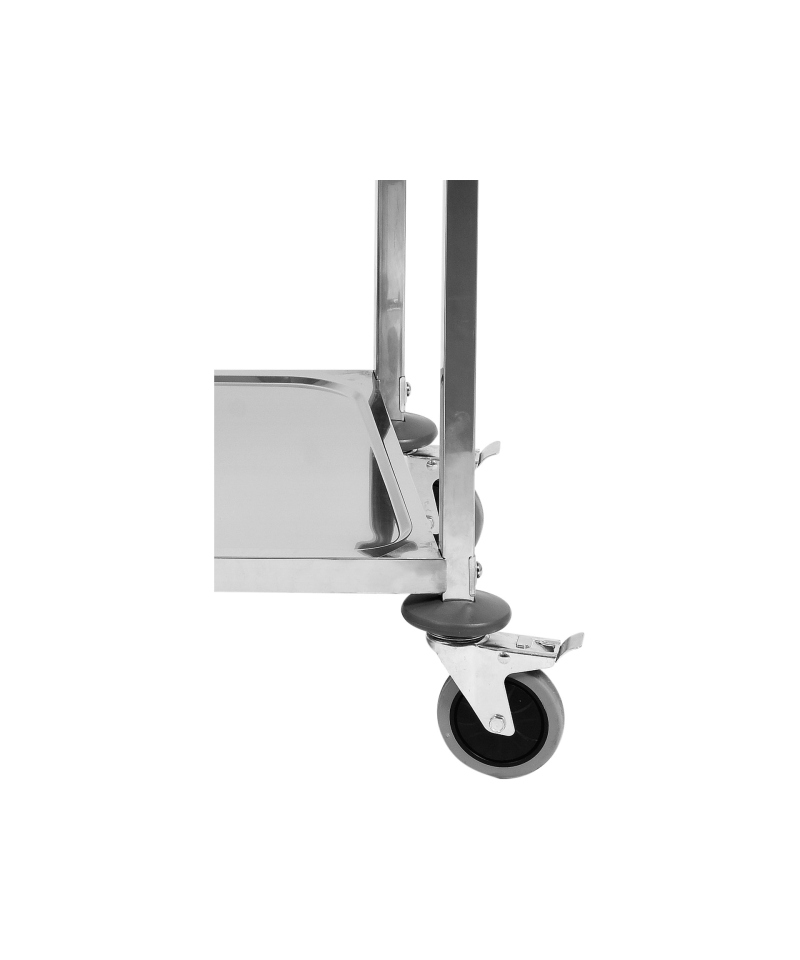 Wózek wyposażono w 4 wysokiej jakości kółka z łożyskami, wykonane z wytrzymałego, szarego materiału TPR. Zastosowanie tego twardego, a jednocześnie elastycznego tworzywa, gwarantuje wyjątkowo cichą pracę. Kółka są przyjazne dla posadzek – nie rysują ich i nie pozostawiają żadnych śladów, a ich pełna skrętność w zakresie 360° pozwala na swobodne manewrowanie nawet w ciasnych pomieszczeniach i wąskich korytarzach. Dla zwiększenia stabilności i bezpieczeństwa, dwa z kółek zostały dodatkowo wyposażone w niezawodne hamulce.