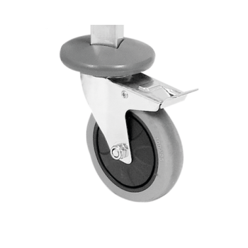 Mobilność wózka zapewniają 4 wysokiej jakości kółka z łożyskami, wykonane z wytrzymałego, szarego materiału TPR. Ten innowacyjny materiał, łączący twardość z elastycznością, gwarantuje niezwykle cichą pracę, nie rysuje posadzek i nie pozostawia na nich nieestetycznych śladów. Kółka są w pełni skrętne w zakresie 360°, co pozwala na wyjątkowo precyzyjne manewrowanie w ciasnych przestrzeniach i wąskich korytarzach. Dla zwiększenia bezpieczeństwa i stabilności, dwa z kółek zostały wyposażone w niezawodne hamulce.