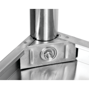 Ze stali nierdzewnej 18/10. Ramy z okrągłego profila. Półki 800x500 mm po obwodzie otoczone wyprofilowaną krawędzią