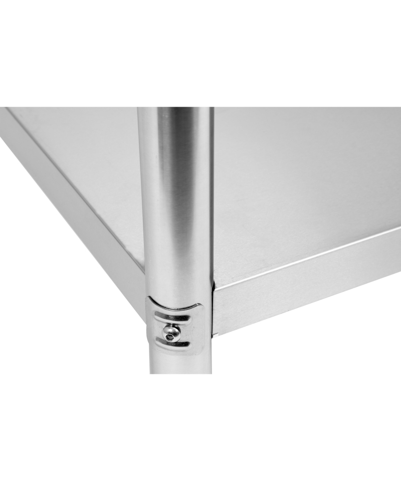 Ten solidny stół centralny z półką został wykonany z najwyższej jakości stali nierdzewnej SS201, co gwarantuje jego niezawodność i długowieczność w wymagających warunkach intensywnej eksploatacji gastronomicznej. Dzięki precyzyjnym połączeniom spawanym i idealnie gładkim powierzchniom, utrzymanie go w nienagannej czystości jest wyjątkowo proste.