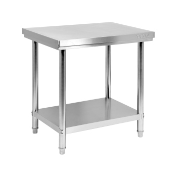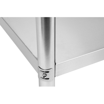 Ten centralny stół z półką został wykonany z najwyższej jakości stali nierdzewnej SS201, co czyni go idealnym wyborem do intensywnej eksploatacji w środowisku gastronomicznym. Precyzyjne połączenia spawane i idealnie gładkie powierzchnie gwarantują wyjątkową łatwość w utrzymaniu czystości, spełniając najwyższe standardy higieny.