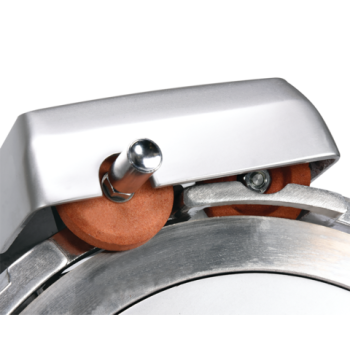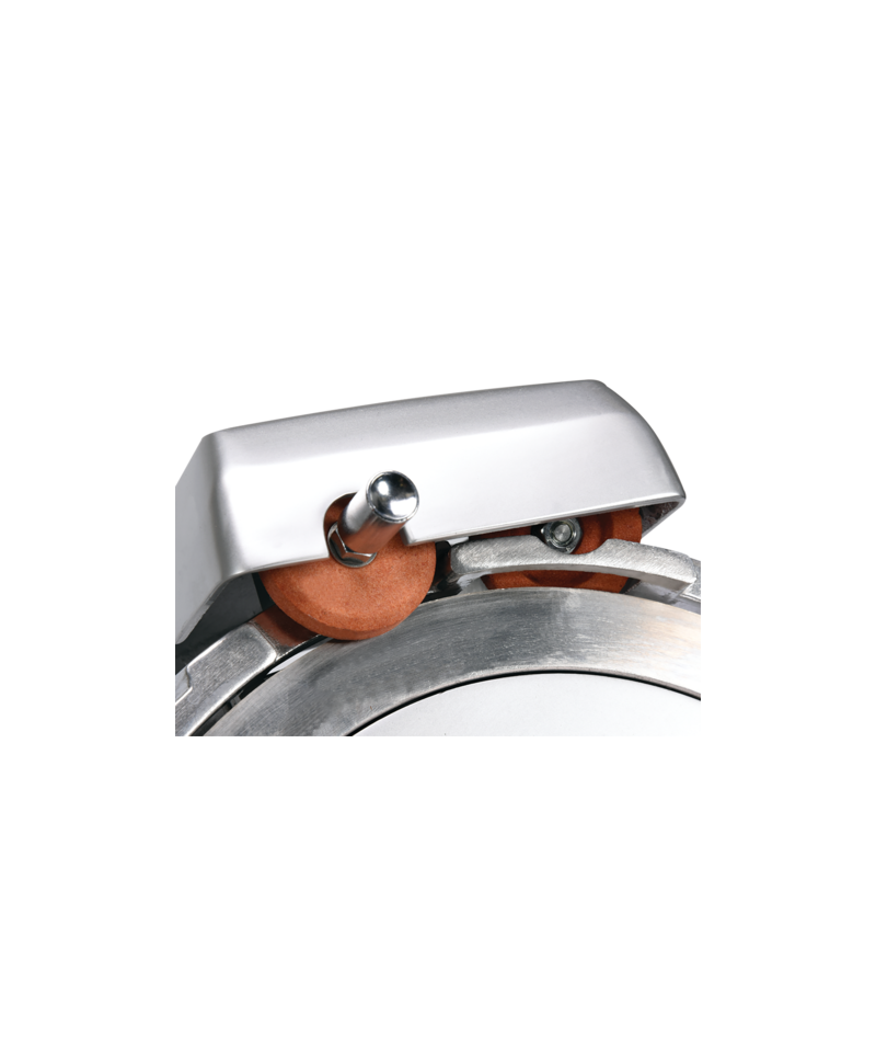 Zintegrowana półautomatyczna ostrzałka to gwarancja zawsze idealnie ostrej tarczy tnącej. Umożliwia ona błyskawiczne i precyzyjne ostrzenie bez konieczności demontażu elementu, co oszczędza czas i zwiększa efektywność pracy.