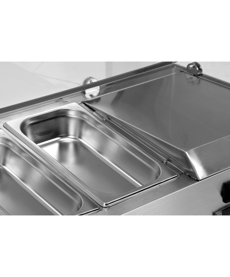 Zewnętrzna i wewnętrzna obudowa, wykonana z wysokogatunkowej stali nierdzewnej SS201, zapewnia nie tylko estetyczny wygląd, ale także wyjątkową łatwość w utrzymaniu higieny. Całość uzupełnia solidna nadstawka ze szkła hartowanego, gwarantująca doskonałą widoczność prezentowanych produktów.
